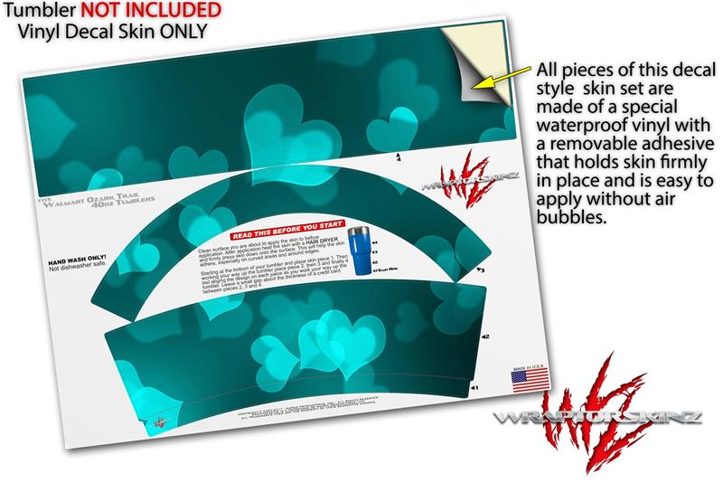 Skin Decal Wrap for Walmart Ozark Trail Tumblers 40oz Bokeh Hearts Neon Teal (TUMBLER NOT INCLUDED) by WraptorSkinz