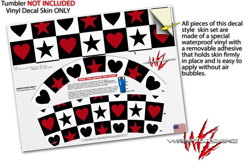 Skin Decal Wrap for Walmart Ozark Trail Tumblers 40oz Hearts and Stars Red (TUMBLER NOT INCLUDED) by WraptorSkinz
