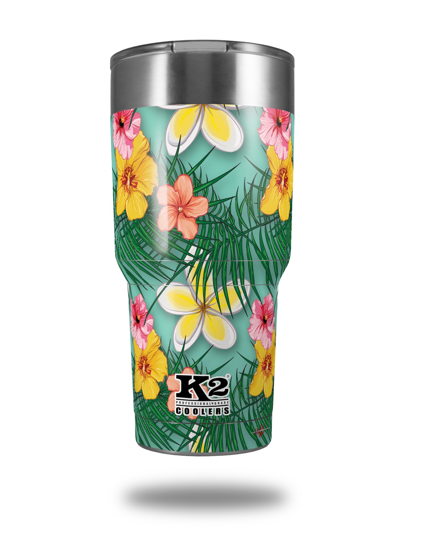 Skin Decal Wrap for K2 Element Tumbler 30oz - Beach Flowers 02 Seafoam Green (TUMBLER NOT INCLUDED) by WraptorSkinz