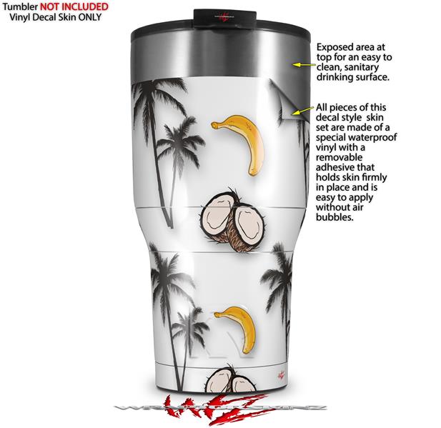 WraptorSkinz Skin Wrap compatible with 2017 and newer RTIC Tumblers 30oz Coconuts Palm Trees and Bananas White (TUMBLER NOT INCLUDED)