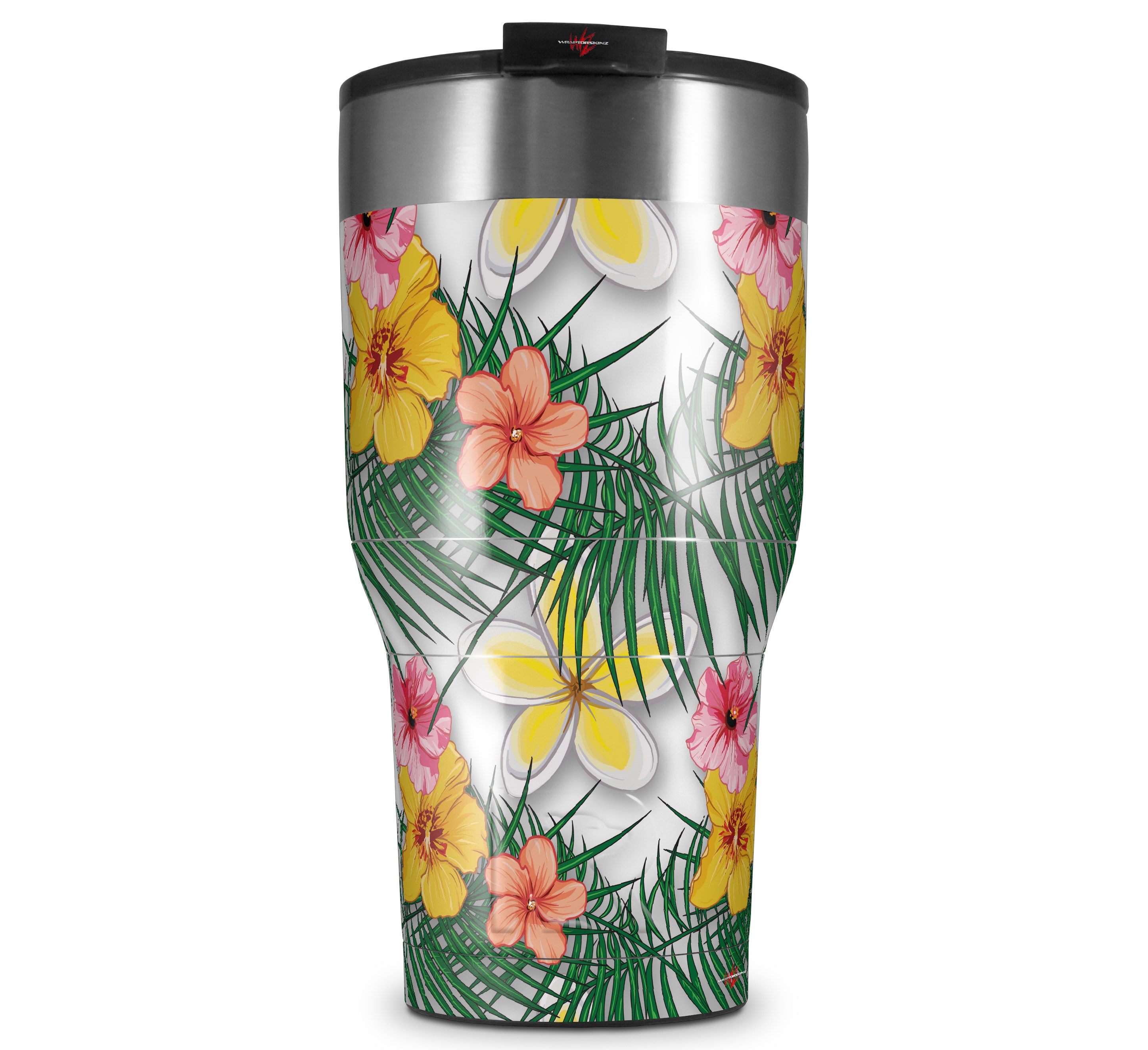 WraptorSkinz Skin Wrap compatible with 2017 and newer RTIC Tumblers 30oz Beach Flowers 02 White (TUMBLER NOT INCLUDED)