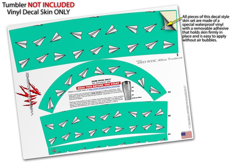 Skin Wrap Decal for 2017 RTIC Tumblers 40oz Paper Planes Turquoise (TUMBLER NOT INCLUDED)