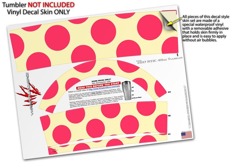 Skin Wrap Decal for 2017 RTIC Tumblers 40oz Kearas Polka Dots Pink On Cream (TUMBLER NOT INCLUDED)