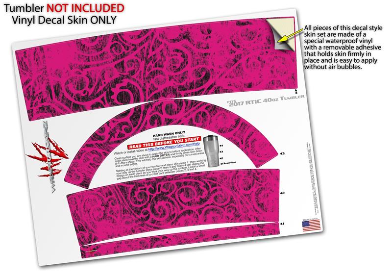 Skin Wrap Decal for 2017 RTIC Tumblers 40oz Folder Doodles Fuchsia (TUMBLER NOT INCLUDED)