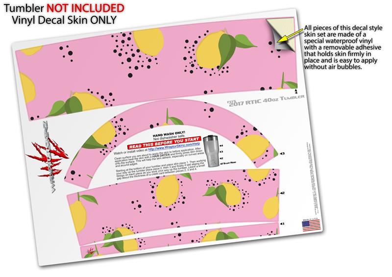 Skin Wrap Decal for 2017 RTIC Tumblers 40oz Lemon Pink (TUMBLER NOT INCLUDED)