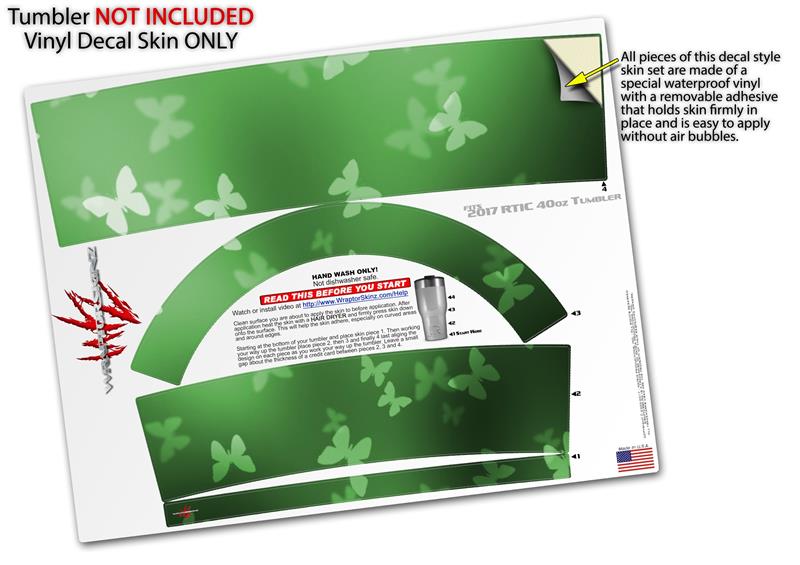Skin Wrap Decal for 2017 RTIC Tumblers 40oz Bokeh Butterflies Green (TUMBLER NOT INCLUDED)