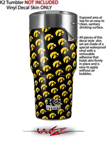 Skin Decal Wrap for K2 Element Tumbler 30oz - Iowa Hawkeyes Tigerhawk Tiled 06 Gold on Black (TUMBLER NOT INCLUDED)