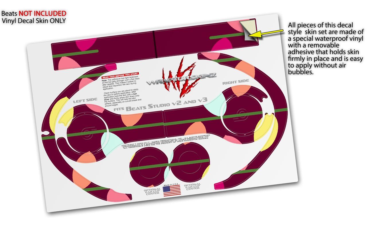 WraptorSkinz Skin Decal Wrap compatible with Beats Studio 2 and 3 Wired and Wireless Headphones Plain Leaves On Burgundy Skin Only (HEADPHONES NOT INCLUDED)