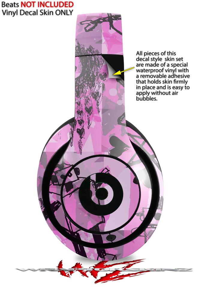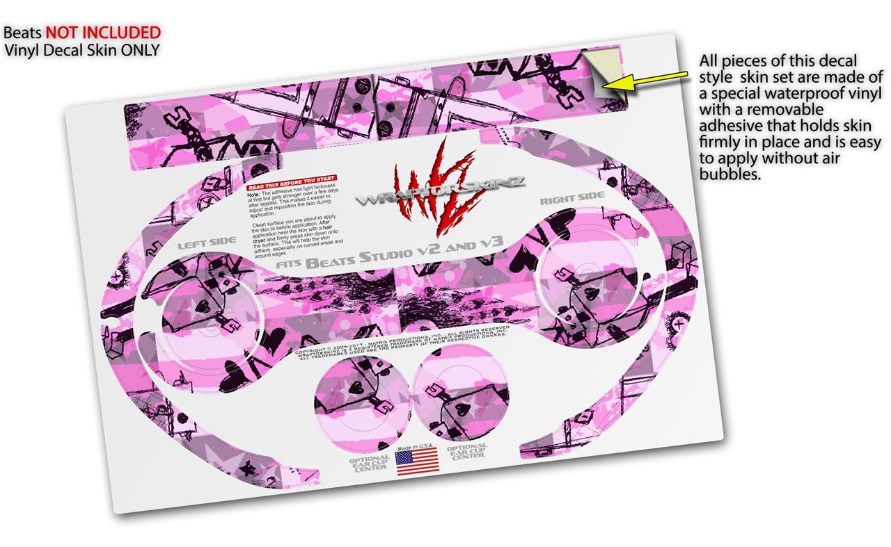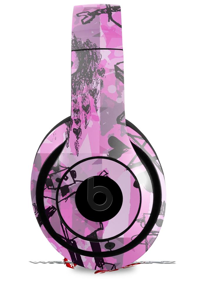 WraptorSkinz Skin Decal Wrap compatible with Beats Studio 2 and 3 Wired and Wireless Headphones Scene Kid Sketches Pink Skin Only (HEADPHONES NOT INCLUDED)
