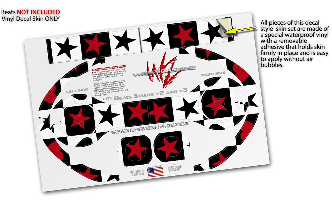 WraptorSkinz Skin Decal Wrap compatible with Beats Studio 2 and 3 Wired and Wireless Headphones Hearts and Stars Red Skin Only (HEADPHONES NOT INCLUDED)