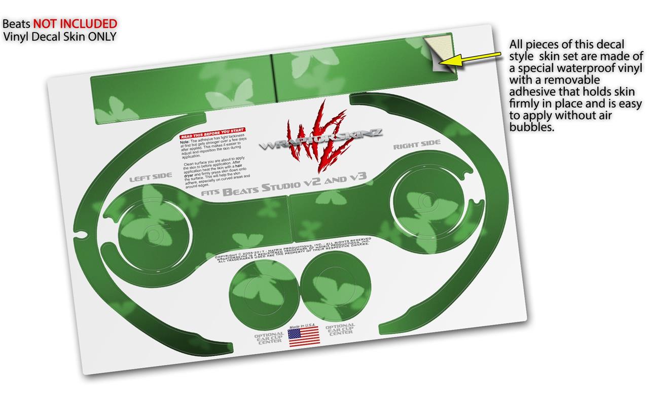 WraptorSkinz Skin Decal Wrap compatible with Beats Studio 2 and 3 Wired and Wireless Headphones Bokeh Butterflies Green Skin Only (HEADPHONES NOT INCLUDED)