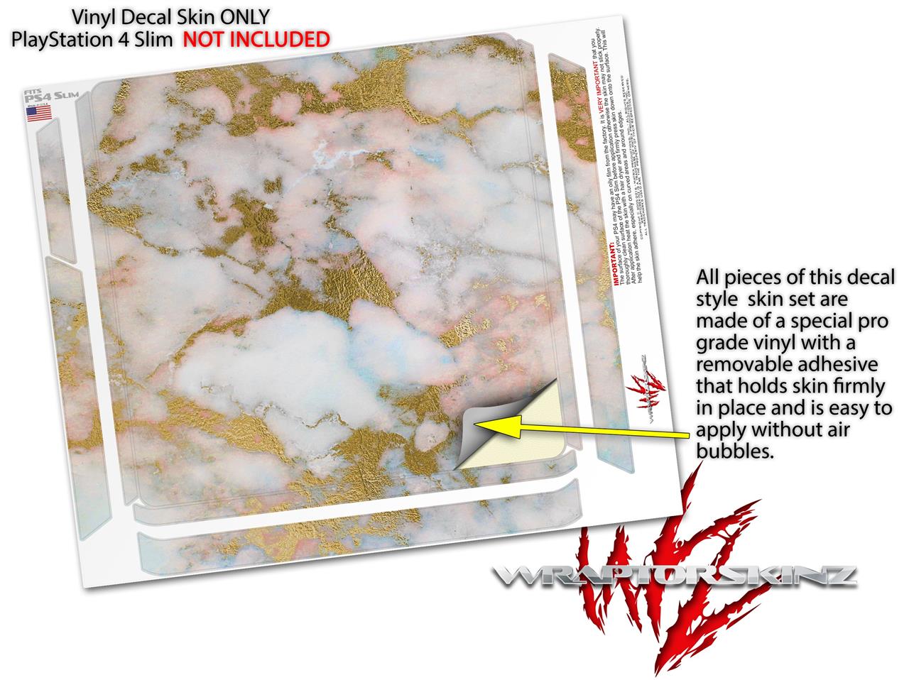 Vinyl Decal Skin Wrap compatible with Sony PlayStation 4 Slim Console Pastel Gilded Marble (PS4 NOT INCLUDED)