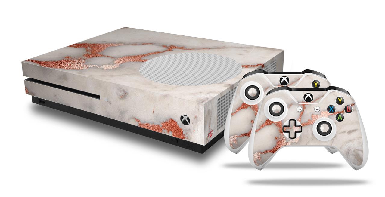 WraptorSkinz Decal Skin Wrap Set works with 2016 and newer XBOX One S Console and 2 Controllers Rose Gold Gilded Marble