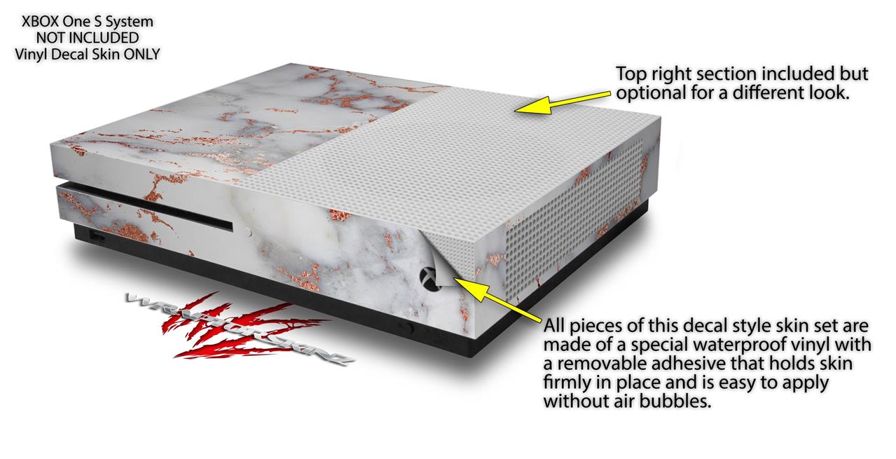 WraptorSkinz Decal Skin Wrap Set works with 2016 and newer XBOX One S Console and 2 Controllers Rose Gold Gilded Grey Marble