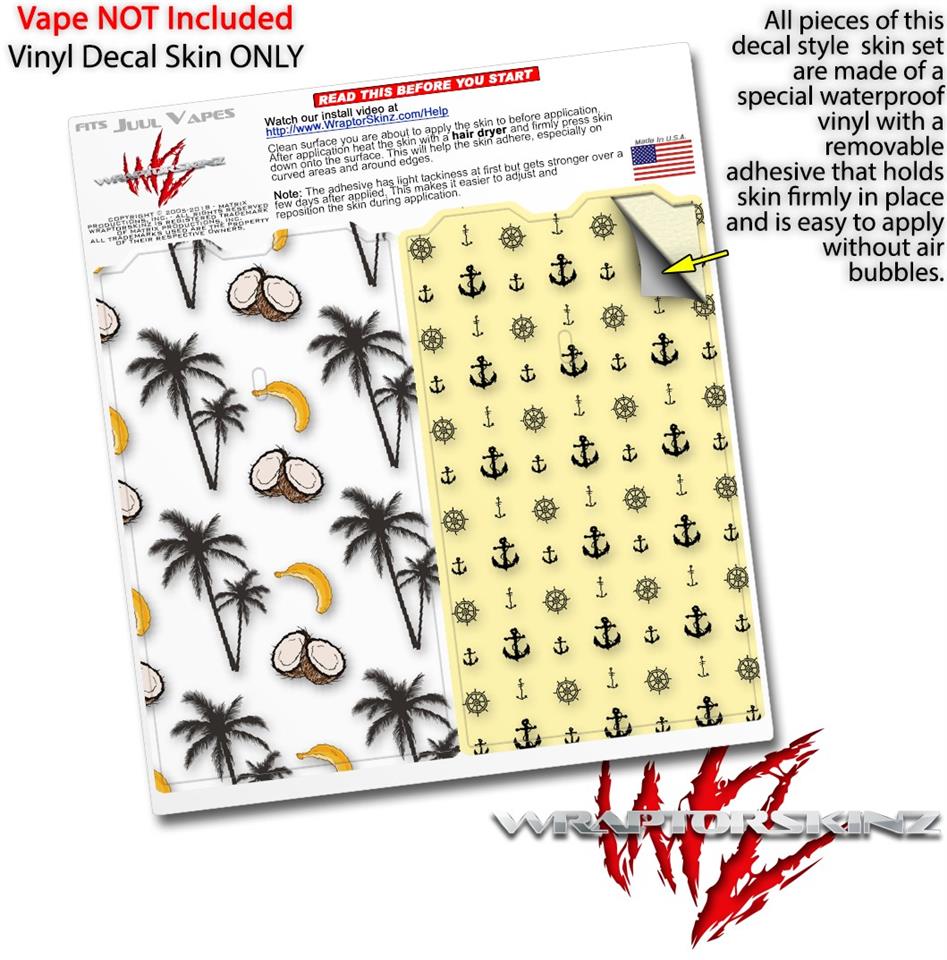 Skin Decal Wrap 2 Pack for Juul Vapes Coconuts Palm Trees and Bananas White JUUL NOT INCLUDED