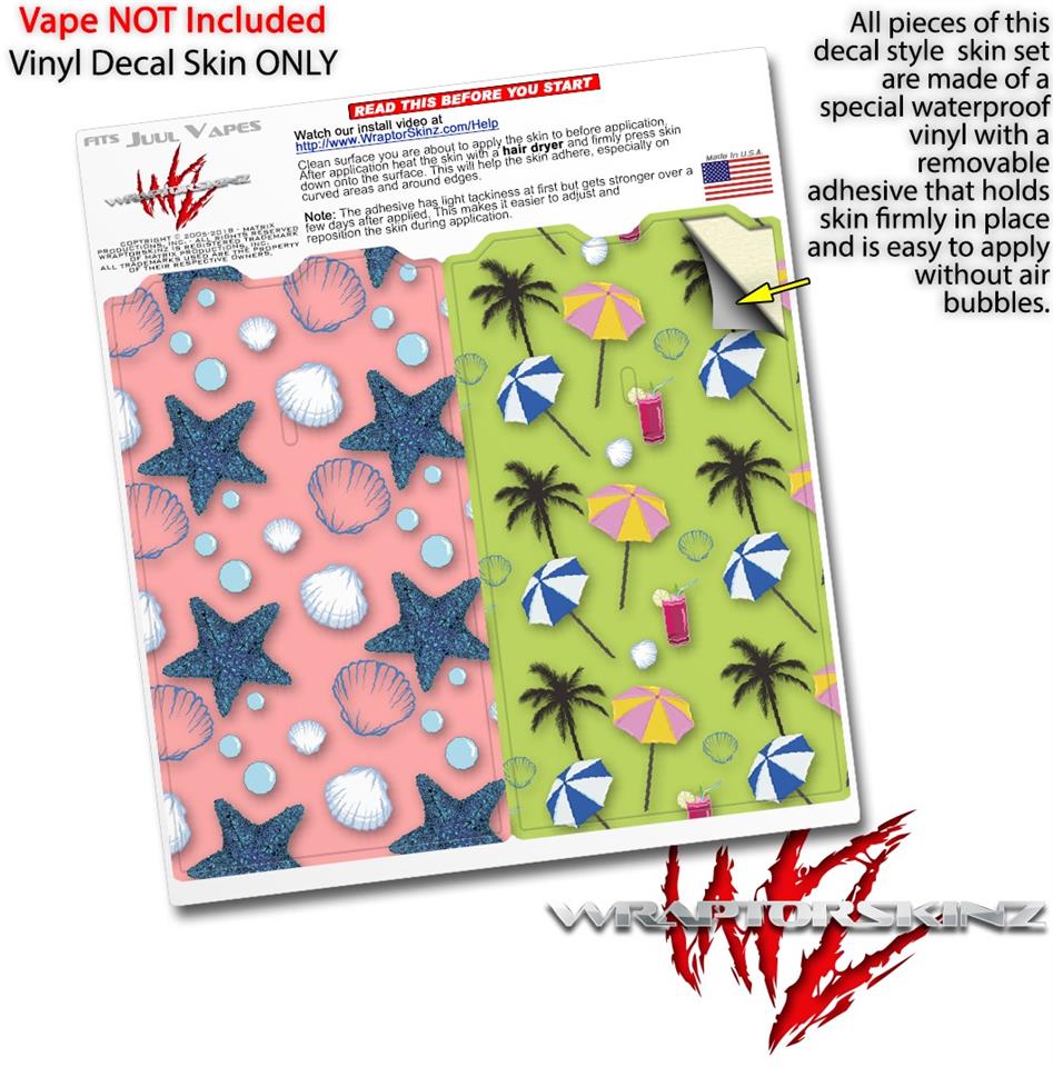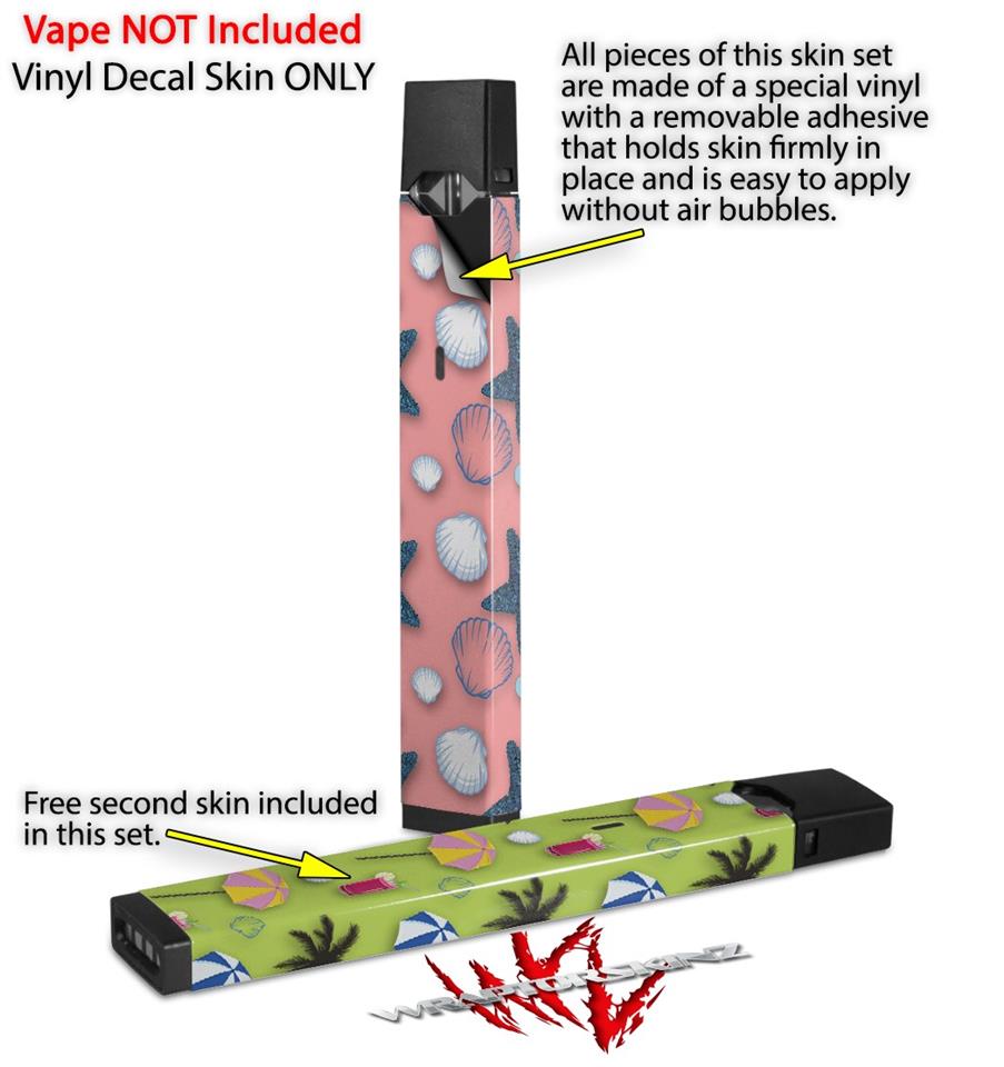 Skin Decal Wrap 2 Pack for Juul Vapes Starfish and Sea Shells Pink JUUL NOT INCLUDED