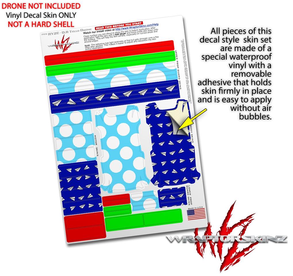 WraptorSkinz® skin wraps are printed using superb photo quality designs and vibrant colors printed with special fade resistant inks that last even in direct sun for years. WraptorSkinz are a composite of two layers of commercial grade materials. The bottom layer is a soft, flexible vinyl with a special removable adhesive that is easily positioned, applied without air bubbles. Next we print the bottom layer with UV protected, fade resistant inks that deliver superb photo quality designs in vibrant colors. Finally we bond a professional grade laminate over the entire skin adding a glossy protective finish. This product is not affiliated with or endorsed by the Ryze or DJI brand.