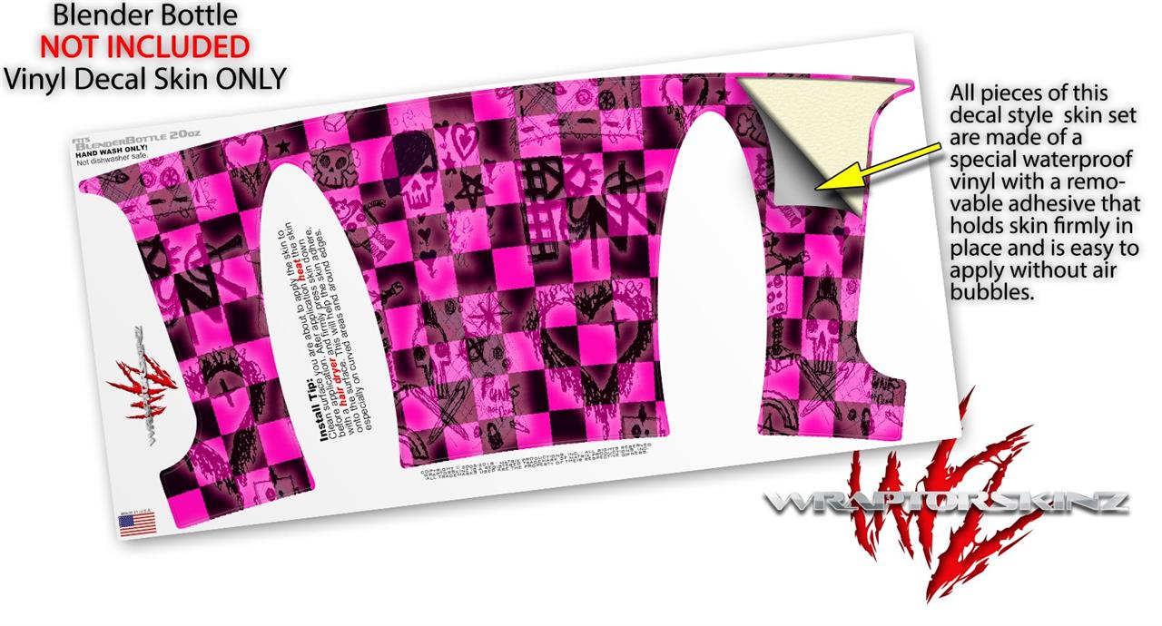 Decal Style Skin Wrap works with Blender Bottle 20oz Pink Checkerboard Sketches (BOTTLE NOT INCLUDED)