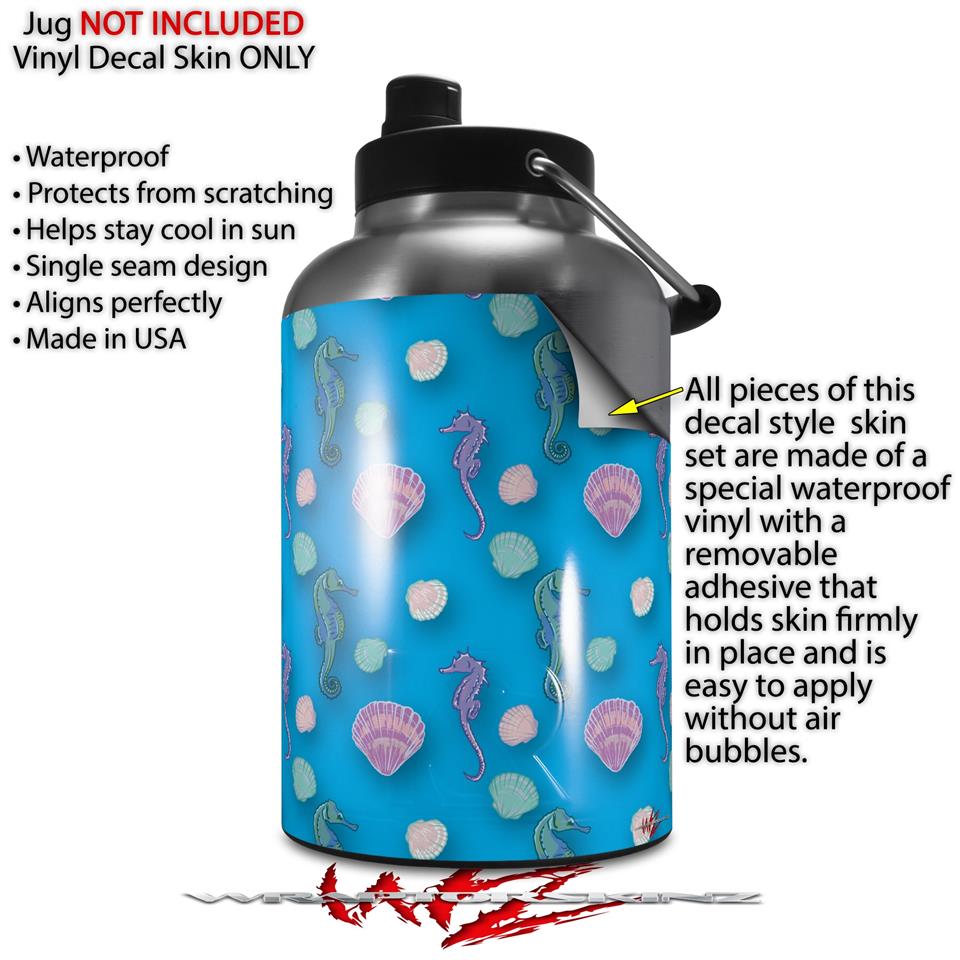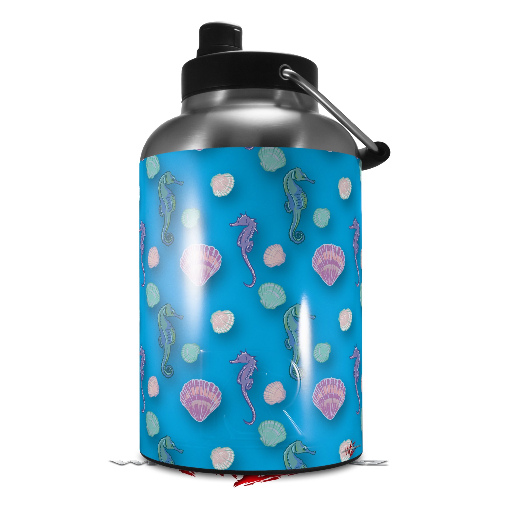 Skin Decal Wrap for 2017 RTIC One Gallon Jug Seahorses and Shells Blue Medium (Jug NOT INCLUDED) by WraptorSkinz