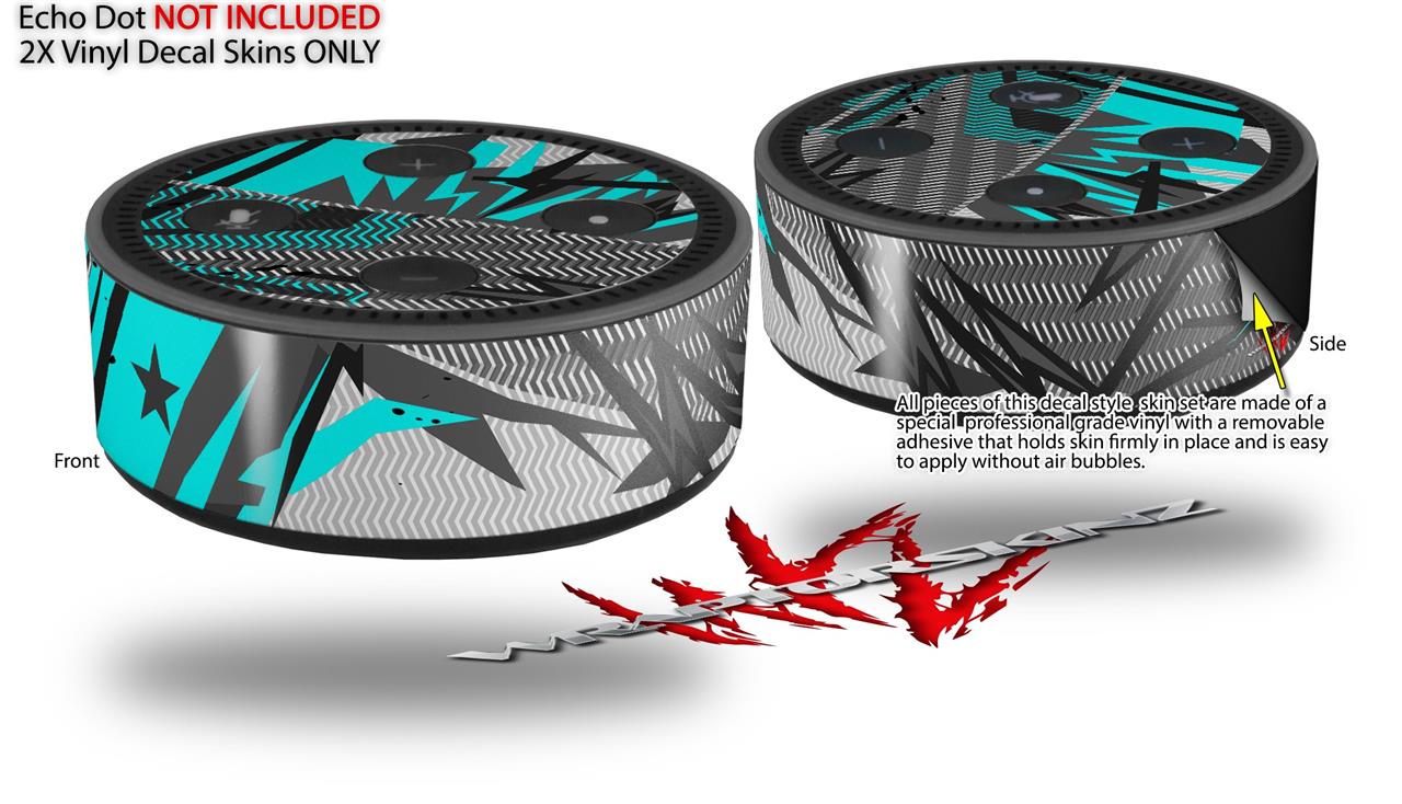 Skin Wrap Decal Set 2 Pack for Amazon Echo Dot 2 - Baja 0032 Neon Teal (2nd Generation ONLY - Echo NOT INCLUDED)