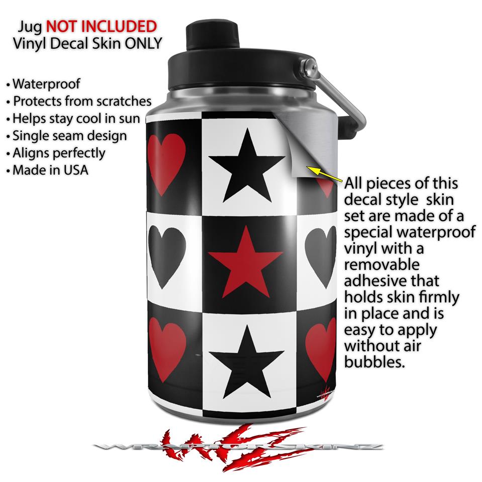 Skin Decal Wrap for Yeti 1 Gallon Jug Hearts and Stars Red - JUG NOT INCLUDED by WraptorSkinz