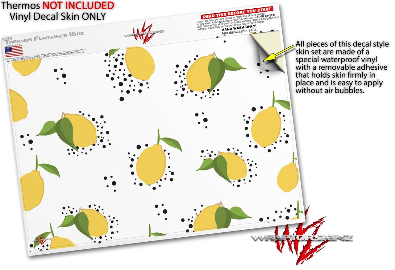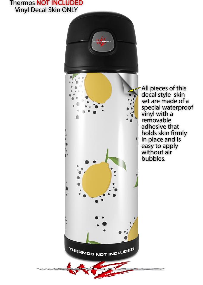 Skin Decal Wrap for Thermos Funtainer 16oz Bottle Lemon Black and White (BOTTLE NOT INCLUDED) by WraptorSkinz