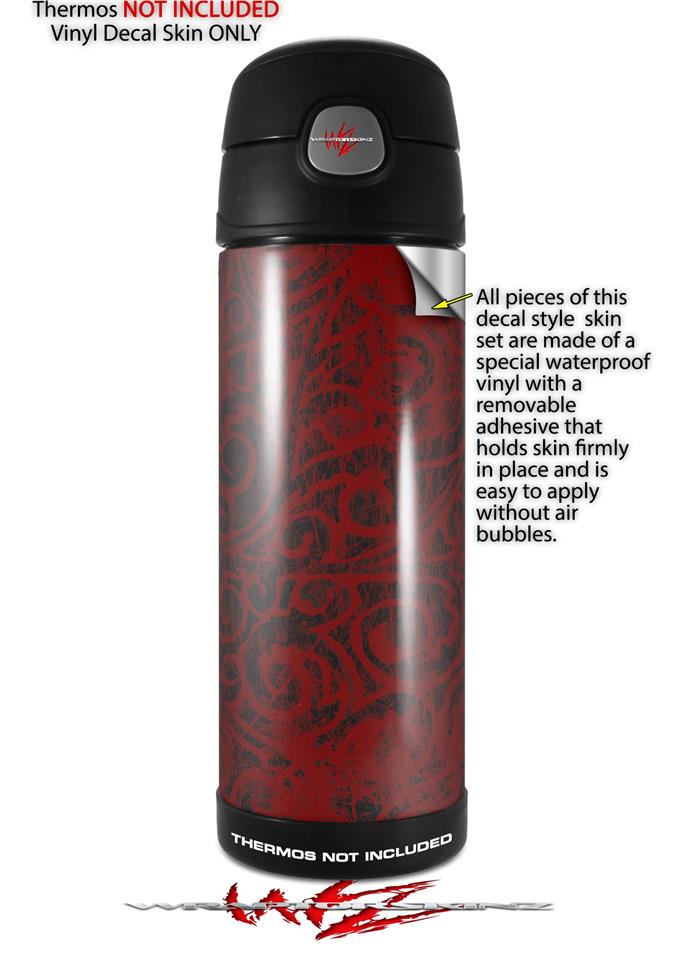 Skin Decal Wrap for Thermos Funtainer 16oz Bottle Folder Doodles Red Dark (BOTTLE NOT INCLUDED) by WraptorSkinz