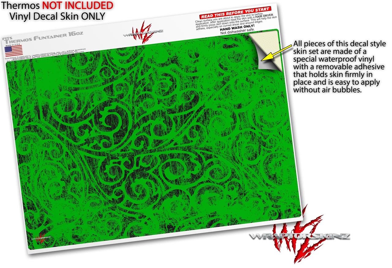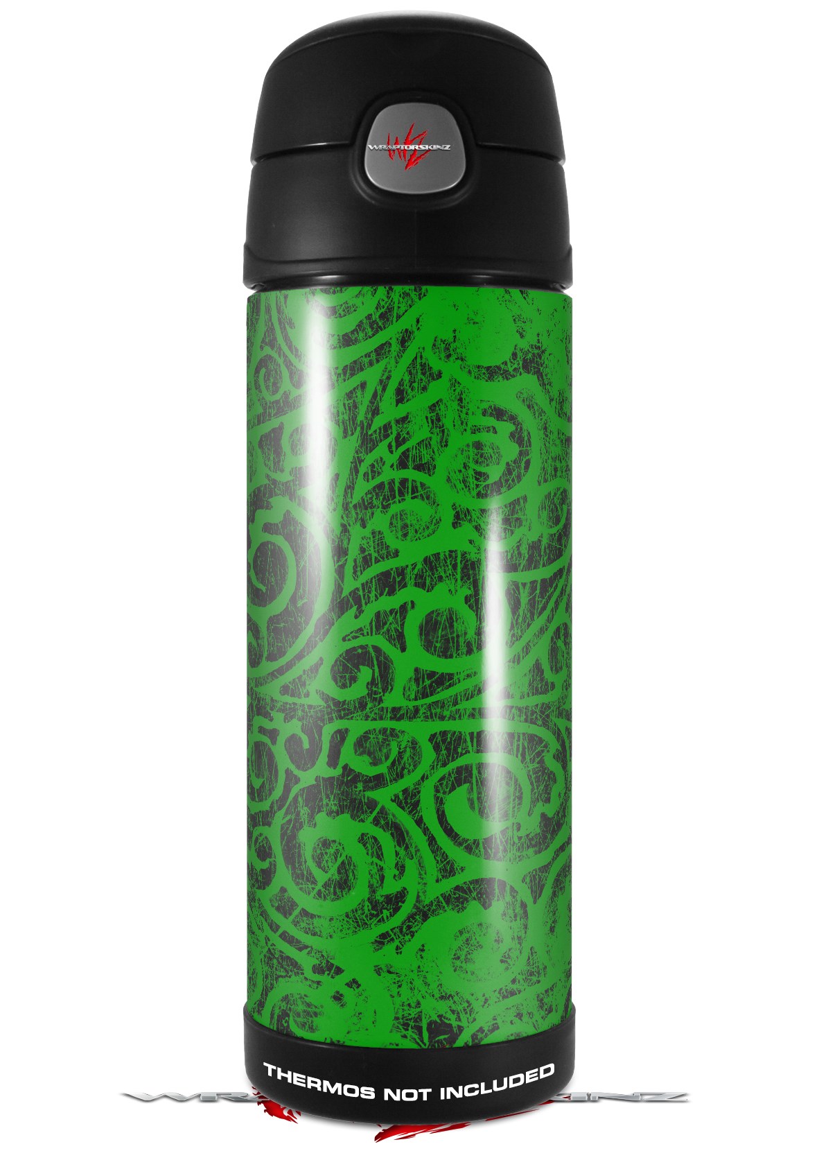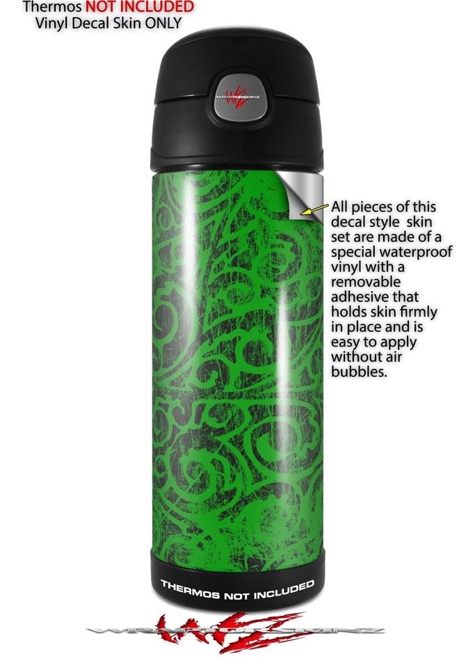 Skin Decal Wrap for Thermos Funtainer 16oz Bottle Folder Doodles Green (BOTTLE NOT INCLUDED) by WraptorSkinz