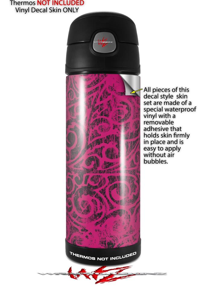 Skin Decal Wrap for Thermos Funtainer 16oz Bottle Folder Doodles Fuchsia (BOTTLE NOT INCLUDED) by WraptorSkinz