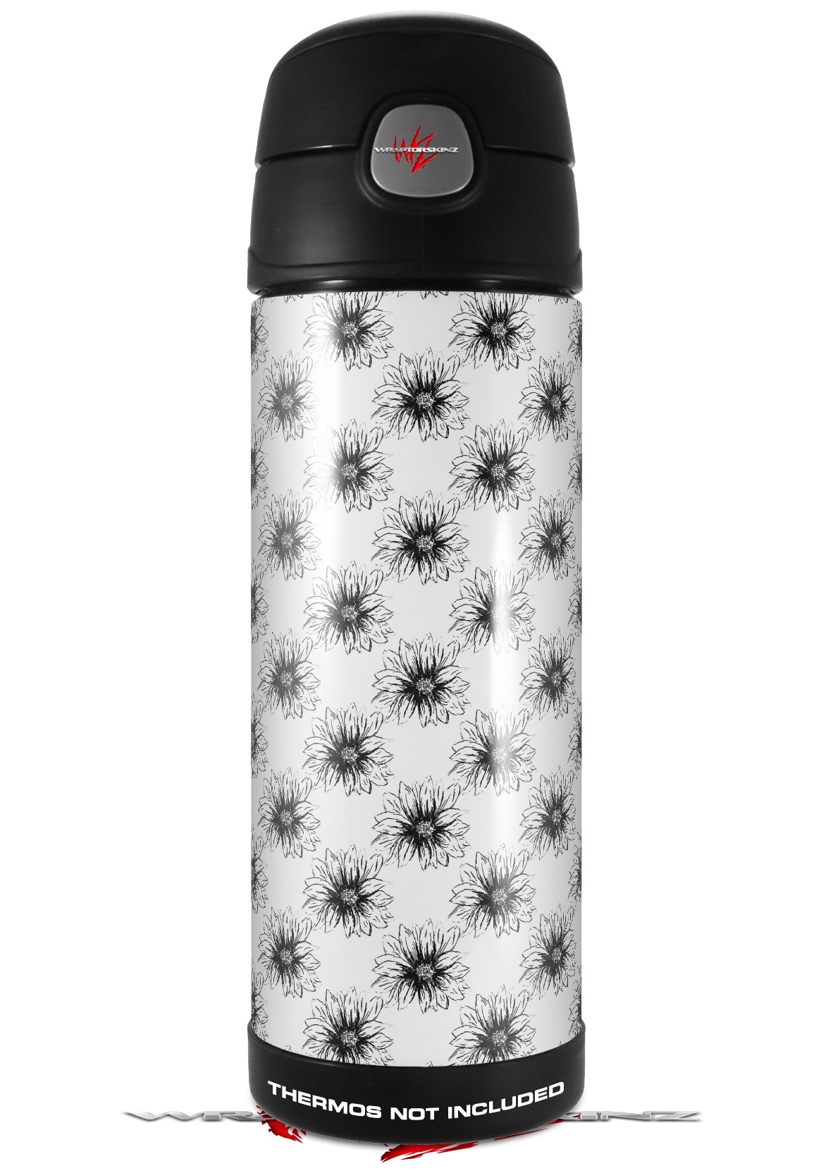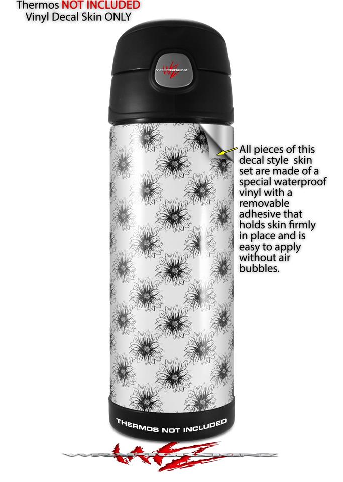 Skin Decal Wrap for Thermos Funtainer 16oz Bottle Kearas Daisies Black on White (BOTTLE NOT INCLUDED) by WraptorSkinz