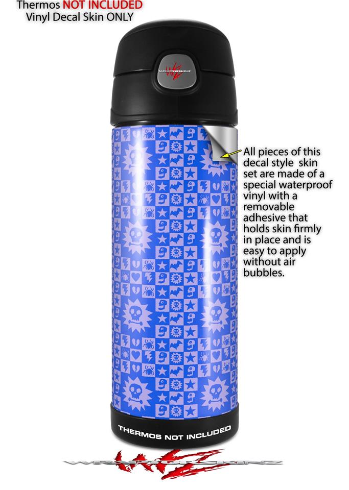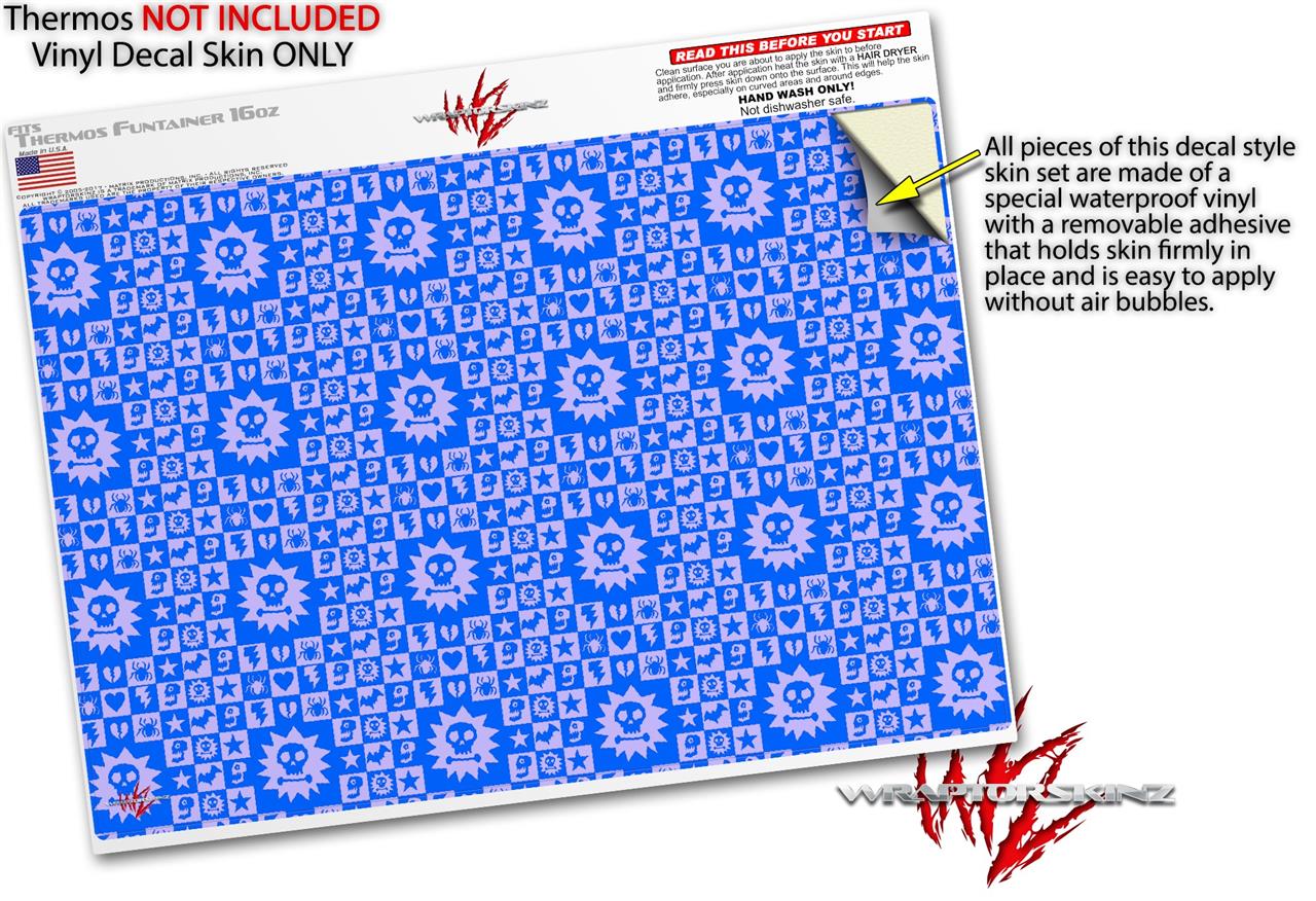 Skin Decal Wrap for Thermos Funtainer 16oz Bottle Gothic Punk Pattern Blue (BOTTLE NOT INCLUDED) by WraptorSkinz