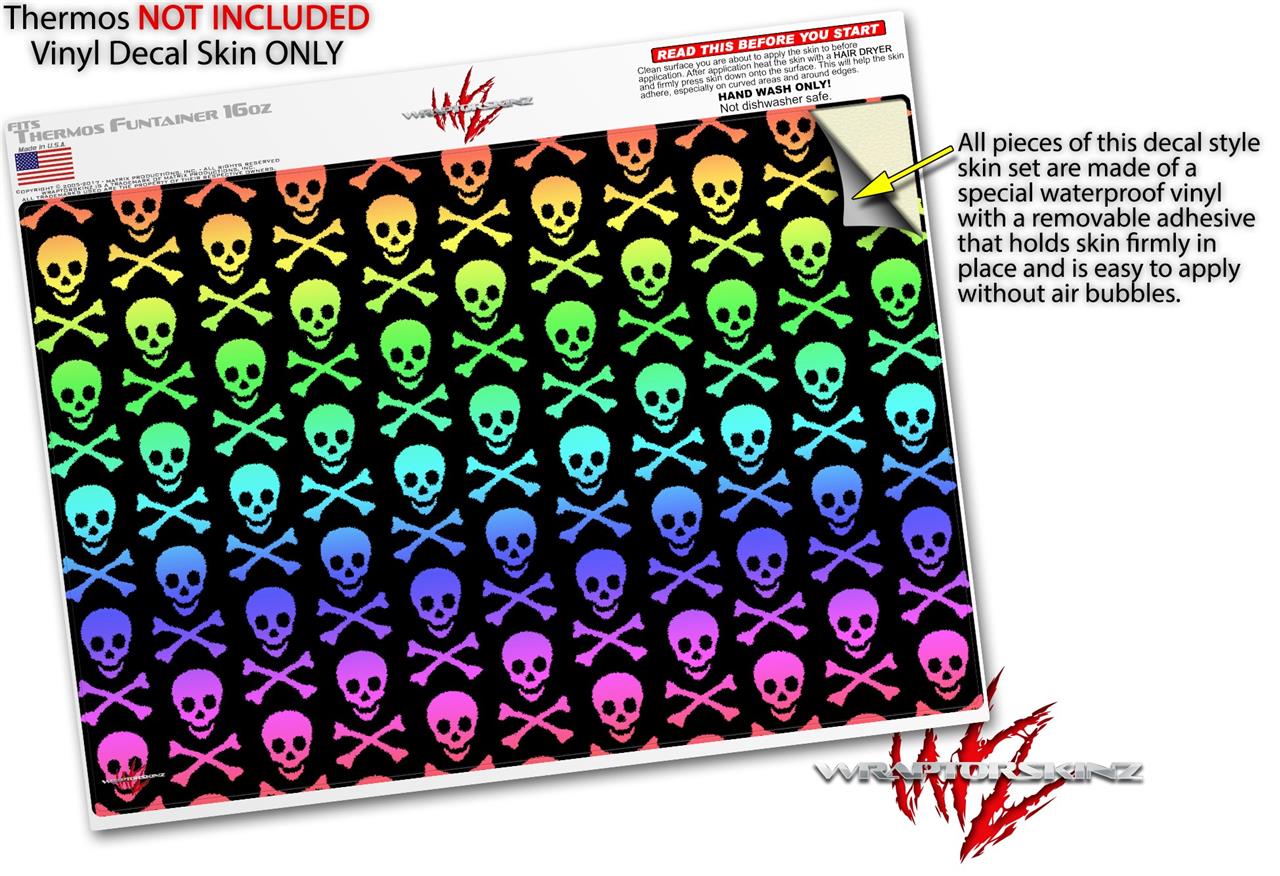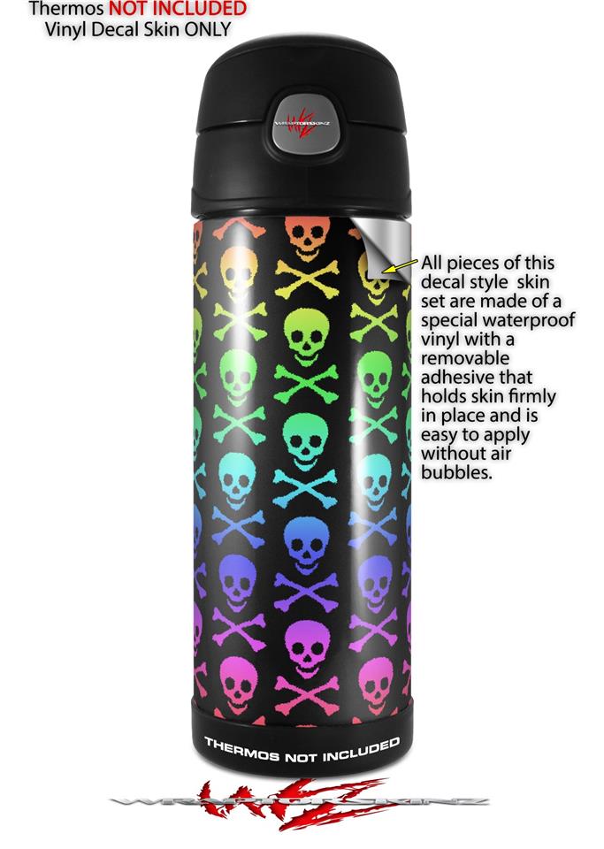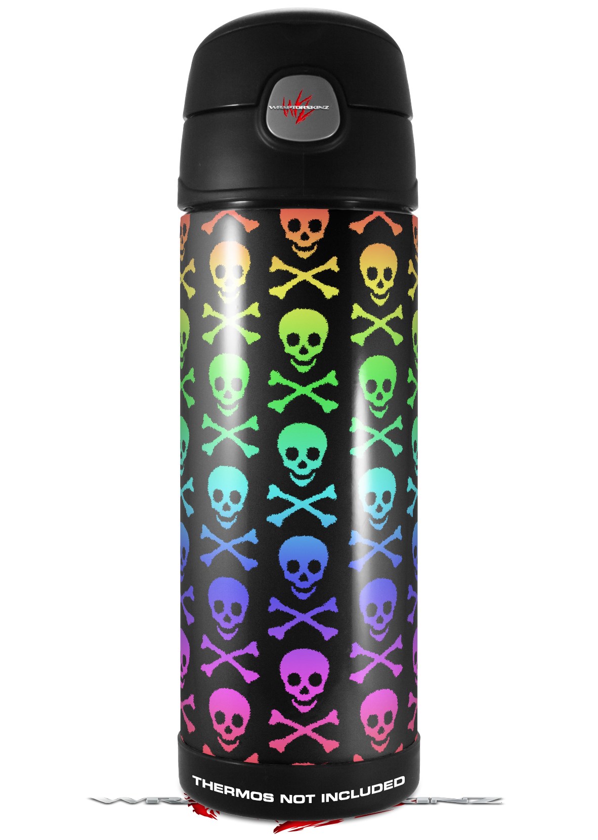 Skin Decal Wrap for Thermos Funtainer 16oz Bottle Skull and Crossbones Rainbow (BOTTLE NOT INCLUDED) by WraptorSkinz