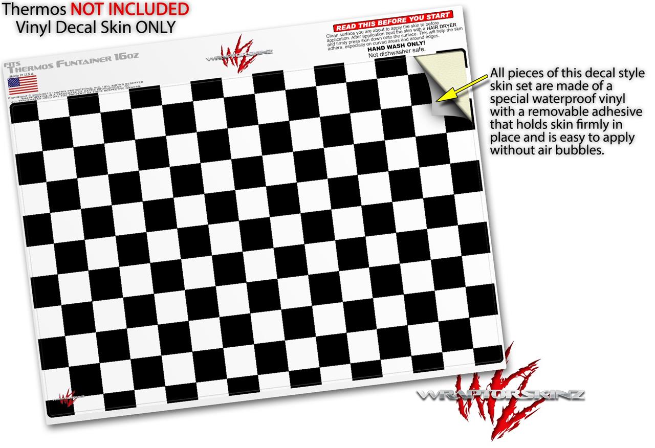 Skin Decal Wrap for Thermos Funtainer 16oz Bottle Checkers White (BOTTLE NOT INCLUDED) by WraptorSkinz