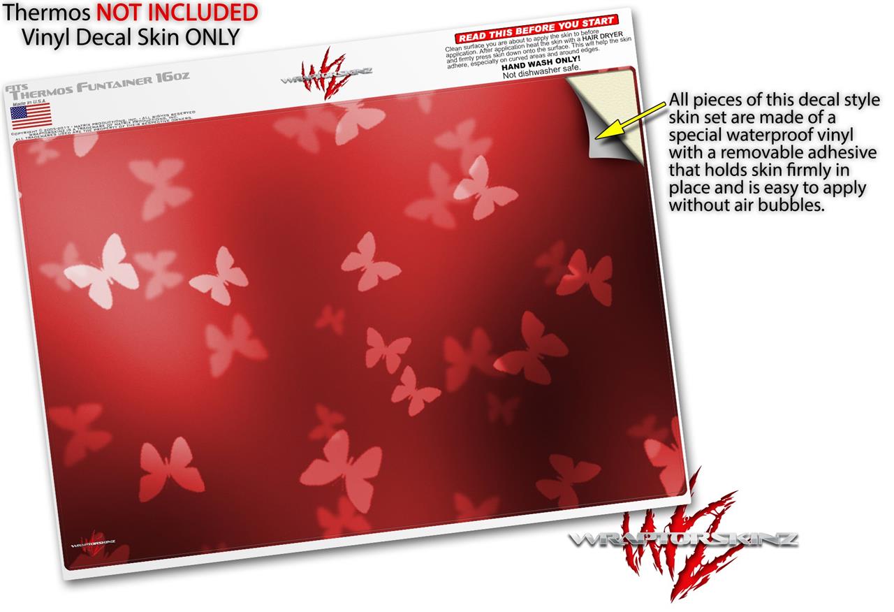Skin Decal Wrap for Thermos Funtainer 16oz Bottle Bokeh Butterflies Red (BOTTLE NOT INCLUDED) by WraptorSkinz