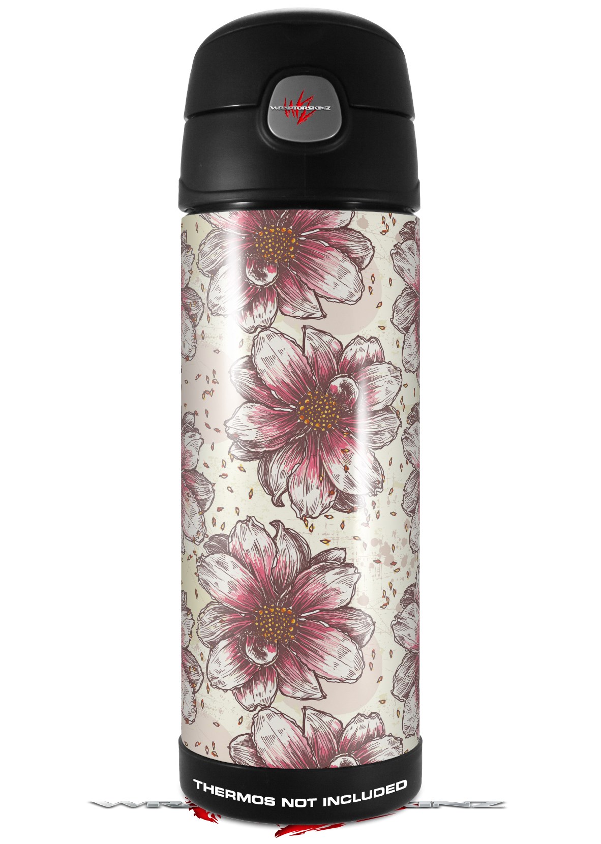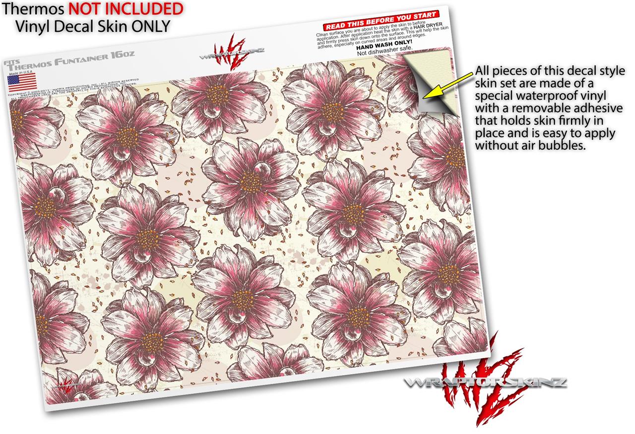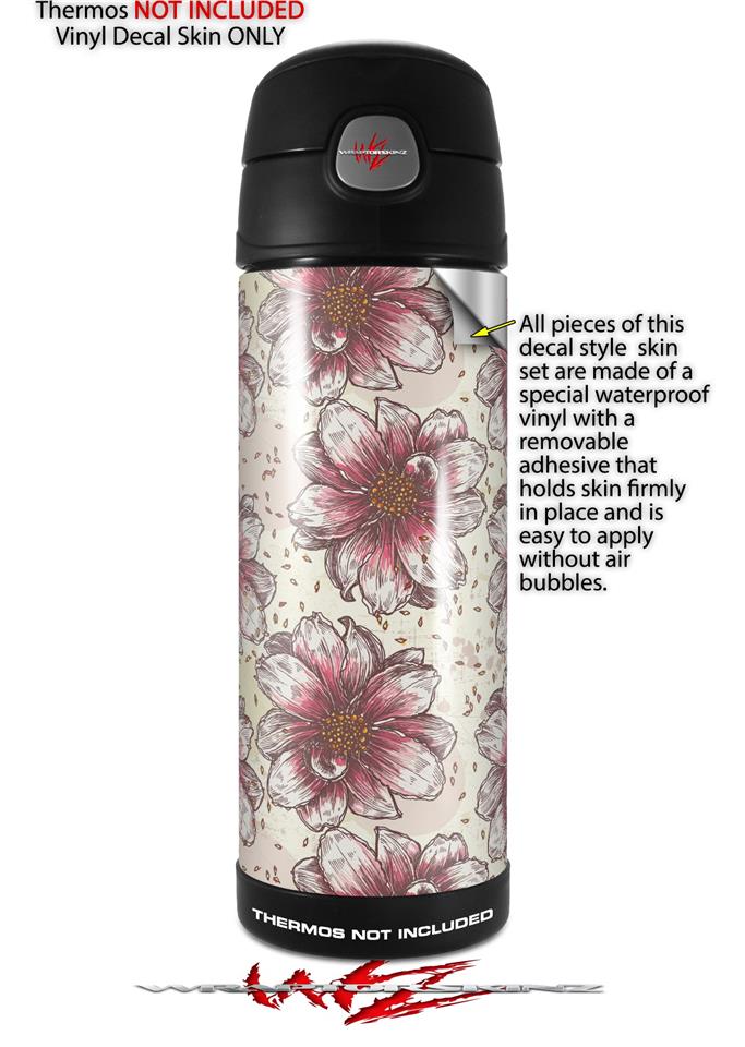 Skin Decal Wrap for Thermos Funtainer 16oz Bottle Flowers Pattern 23 (BOTTLE NOT INCLUDED) by WraptorSkinz
