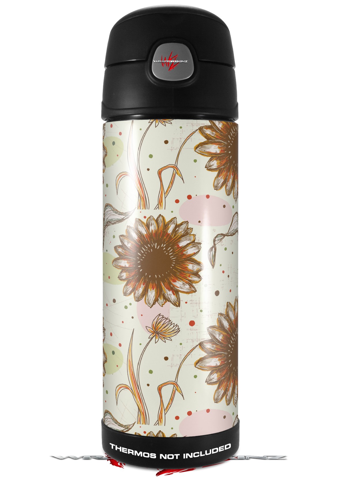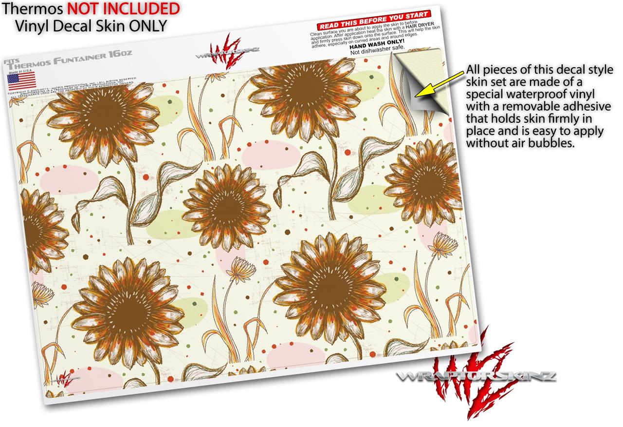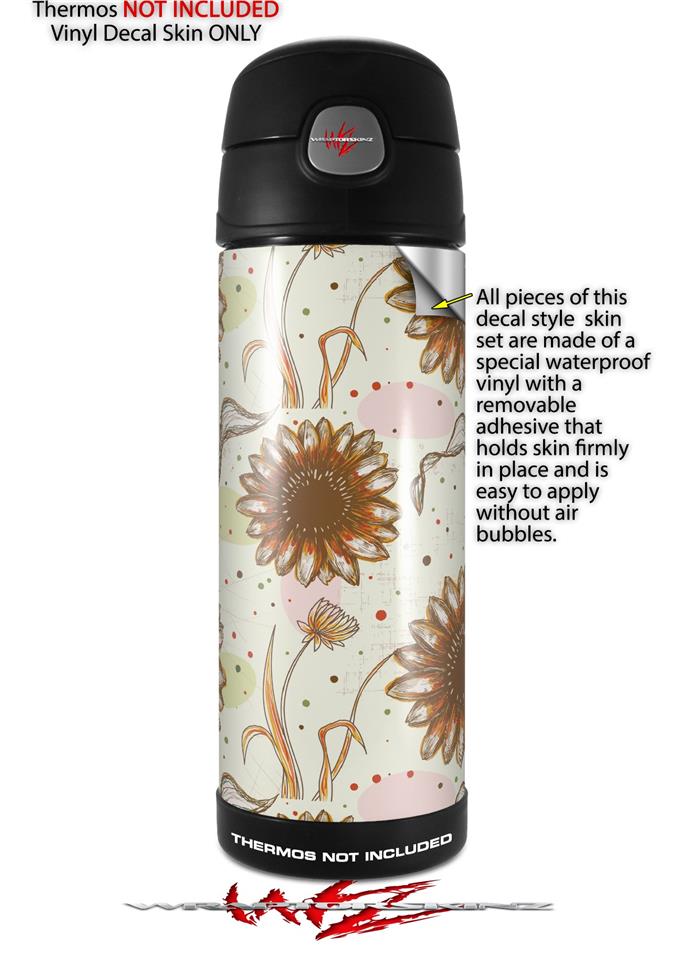 Skin Decal Wrap for Thermos Funtainer 16oz Bottle Flowers Pattern 19 (BOTTLE NOT INCLUDED) by WraptorSkinz