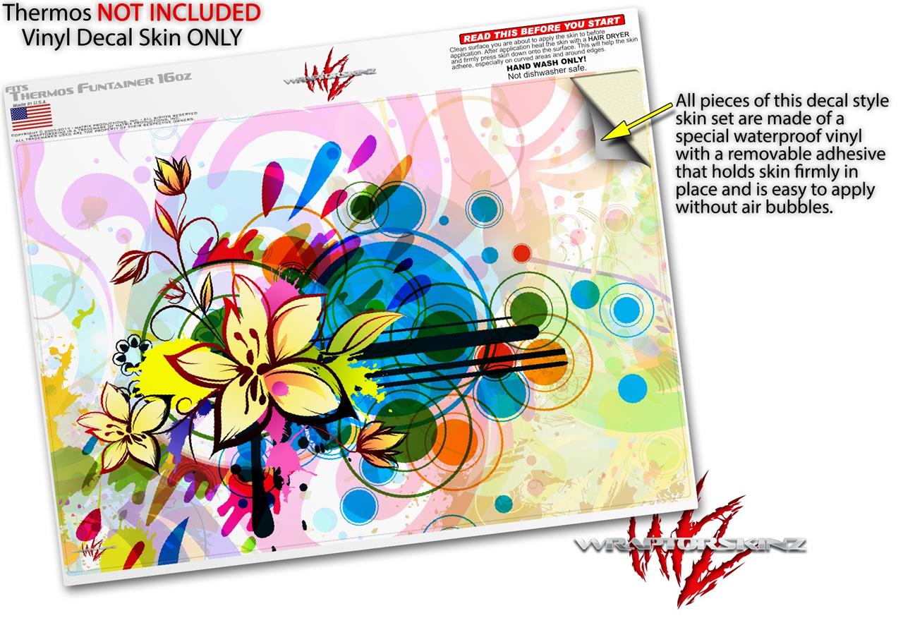 Skin Decal Wrap for Thermos Funtainer 16oz Bottle Floral Splash (BOTTLE NOT INCLUDED) by WraptorSkinz