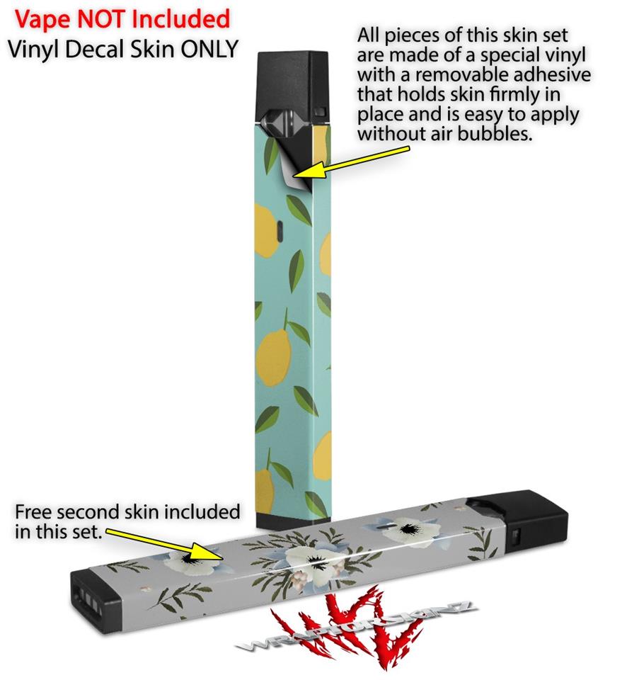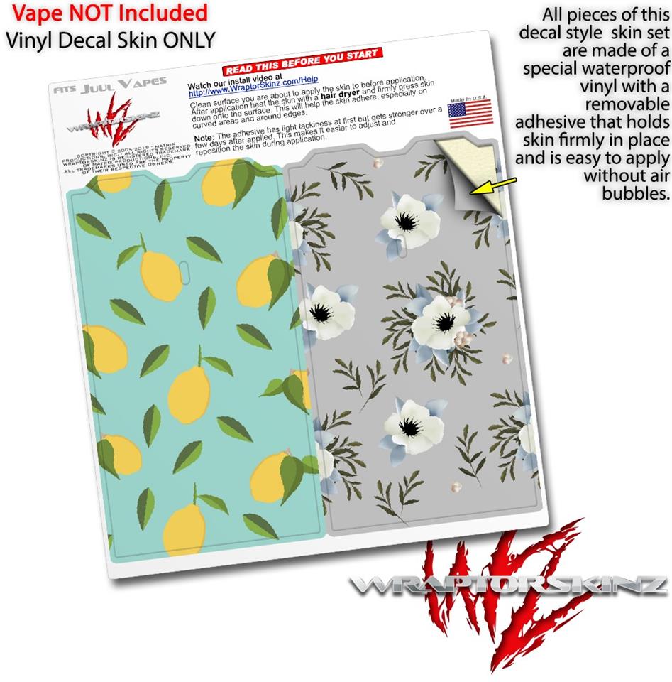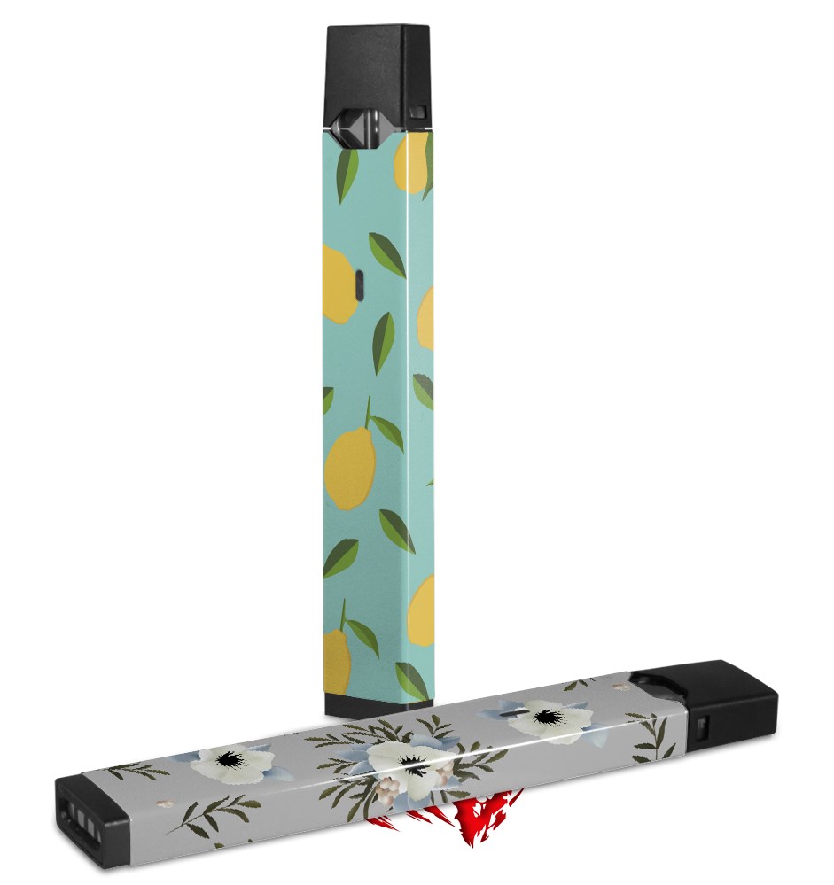 Skin Decal Wrap 2 Pack for Juul Vapes Lemon Leaves Light Blue JUUL NOT INCLUDED