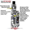 WraptorSkinz® skin wraps are printed using superb photo quality designs and vibrant colors printed with special fade resistant inks that last even in direct sun for years. WraptorSkinz are a composite of two layers of commercial grade materials. The bottom layer is a soft, flexible vinyl with a special removable adhesive that is easily positioned, applied without air bubbles. Next we print the bottom layer with UV protected, fade resistant inks that deliver superb photo quality designs in vibrant colors. Finally we bond a professional grade laminate over the entire skin adding a glossy protective finish. This product is not affiliated with or endorsed by the Smok brand.