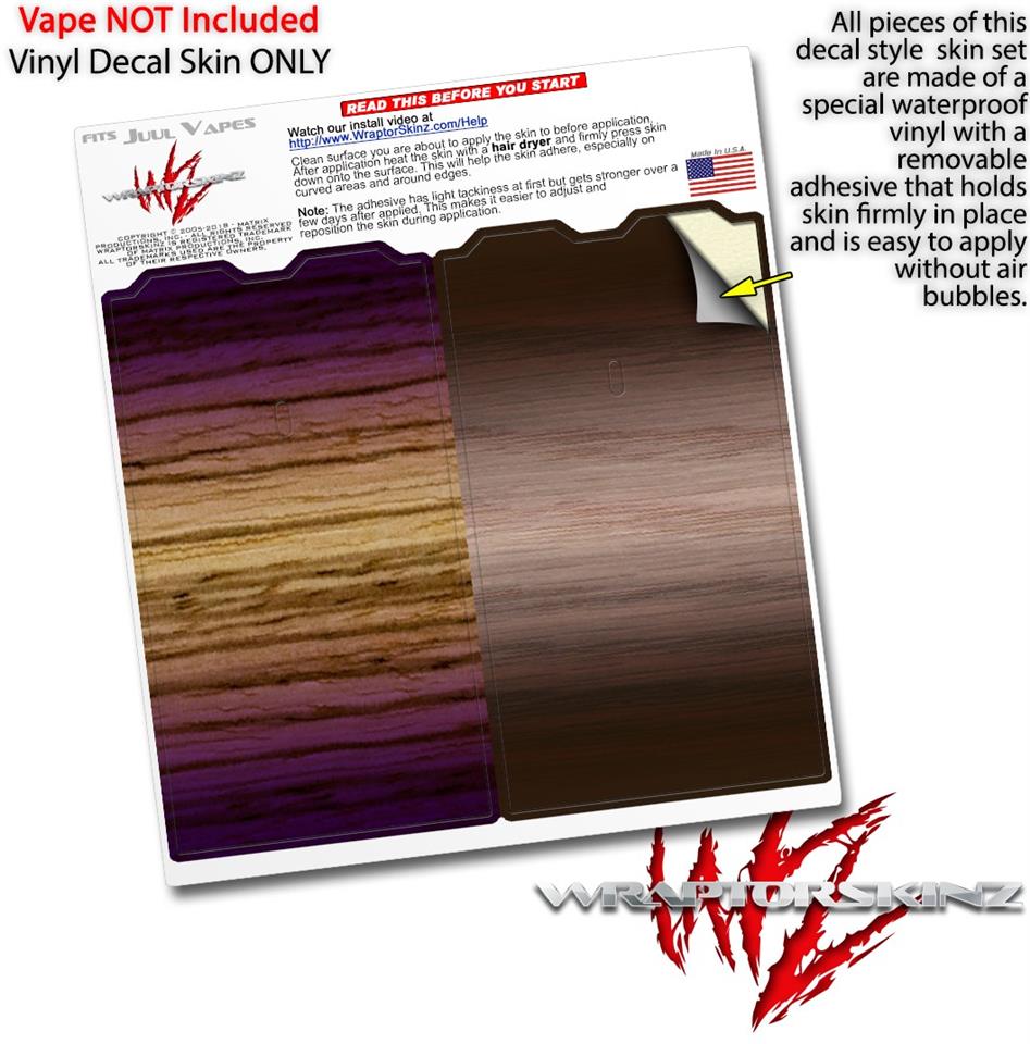 Skin Decal Wrap 2 Pack for Juul Vapes Exotic Wood Zebra Wood Burst Plum Purple JUUL NOT INCLUDED