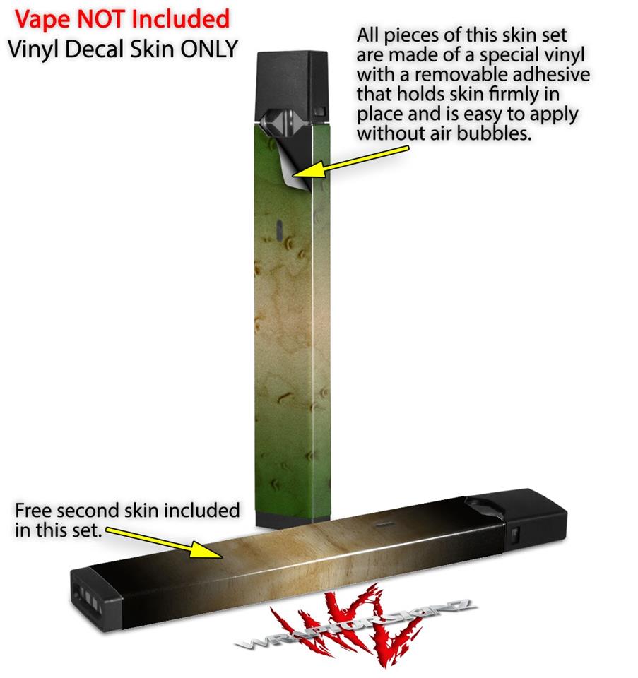 Skin Decal Wrap 2 Pack for Juul Vapes Exotic Wood Birdseye Maple Burst Tropical Green JUUL NOT INCLUDED