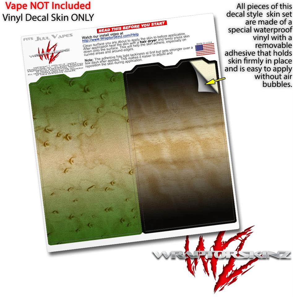 WraptorSkinz® skin wraps are printed using superb photo quality designs and vibrant colors printed with special fade resistant inks that last even in direct sun for years. WraptorSkinz are a composite of two layers of commercial grade materials. The bottom layer is a soft, flexible vinyl with a special removable adhesive that is easily positioned, applied without air bubbles. Next we print the bottom layer with UV protected, fade resistant inks that deliver superb photo quality designs in vibrant colors. Finally we bond a professional grade laminate over the entire skin adding a glossy protective finish. This product is not affiliated with or endorsed by the Juul brand.