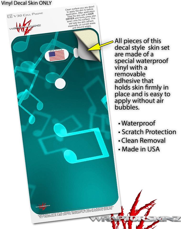 Skin Decal Wrap for LG V30 Bokeh Music Neon Teal