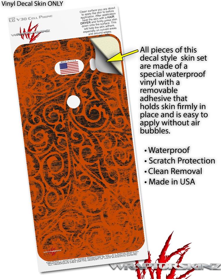 Skin Decal Wrap for LG V30 Folder Doodles Burnt Orange