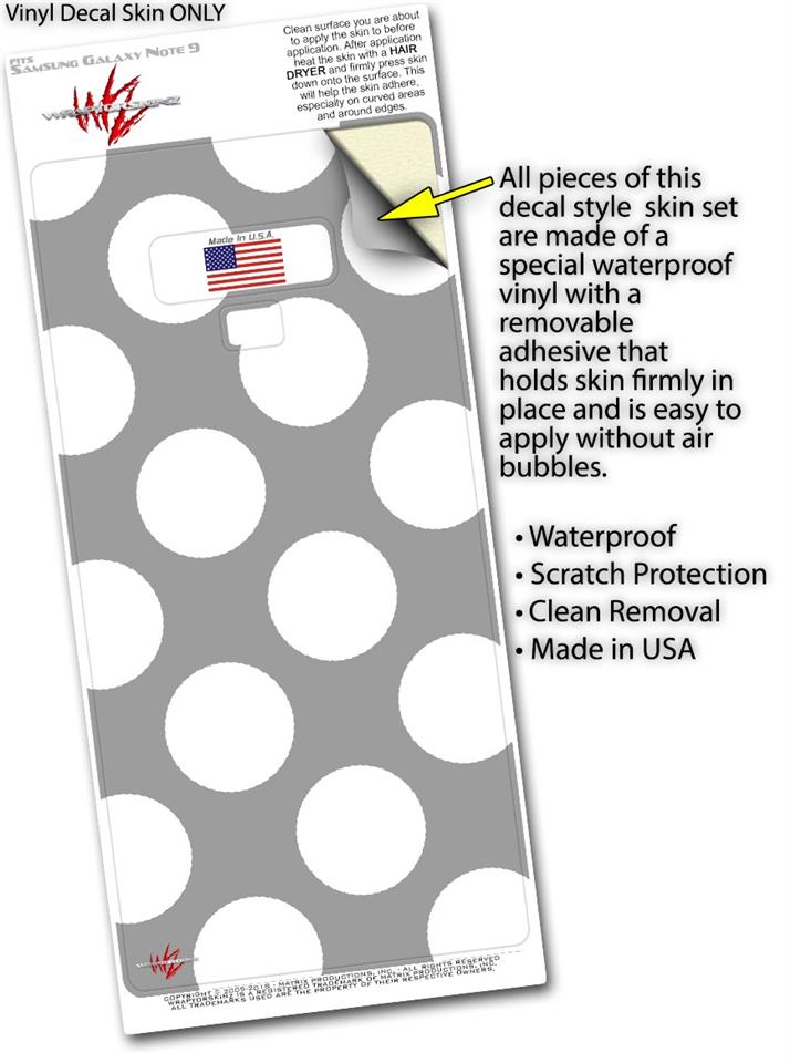 Decal style Skin Wrap compatible with Samsung Galaxy Note 9 Kearas Polka Dots Whtie On Gray