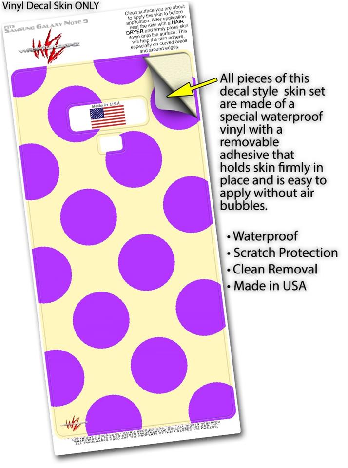 Decal style Skin Wrap compatible with Samsung Galaxy Note 9 Kearas Polka Dots Purple On Cream
