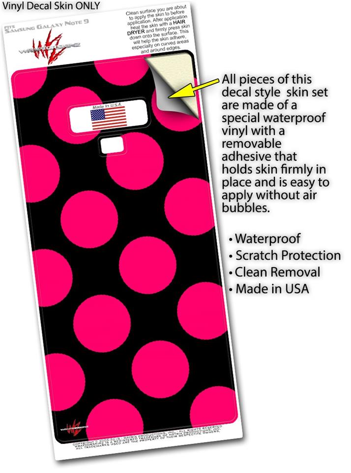 Decal style Skin Wrap compatible with Samsung Galaxy Note 9 Kearas Polka Dots Pink On Black