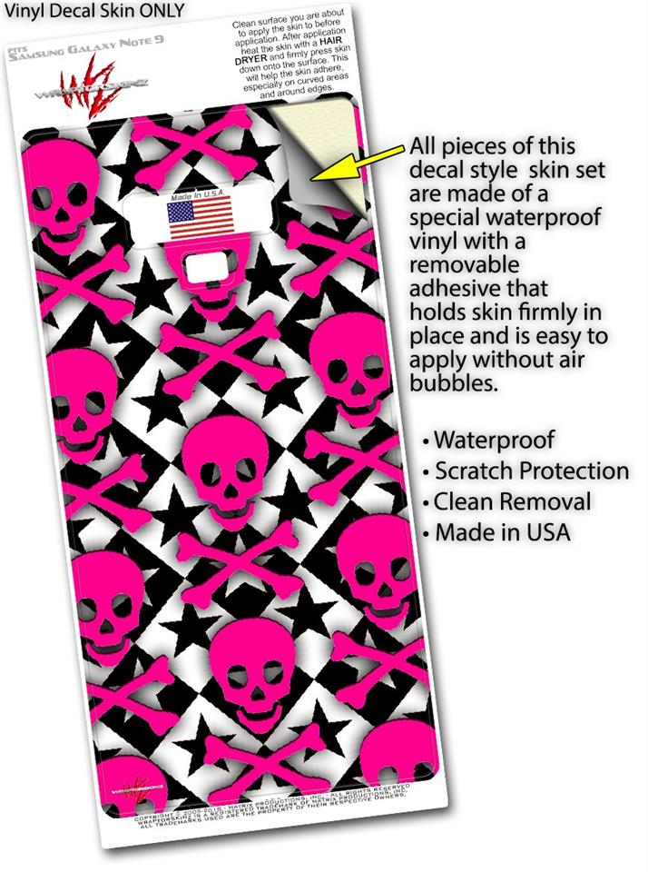 Decal style Skin Wrap compatible with Samsung Galaxy Note 9 Pink Skulls and Stars