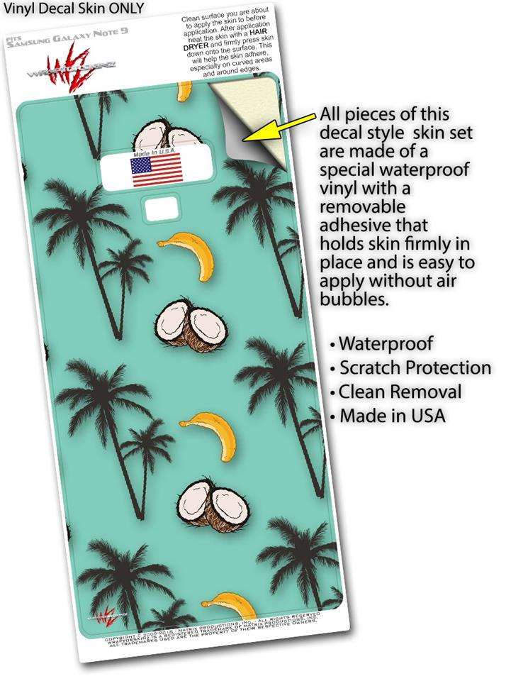 Decal style Skin Wrap compatible with Samsung Galaxy Note 9 Coconuts Palm Trees and Bananas Seafoam Green