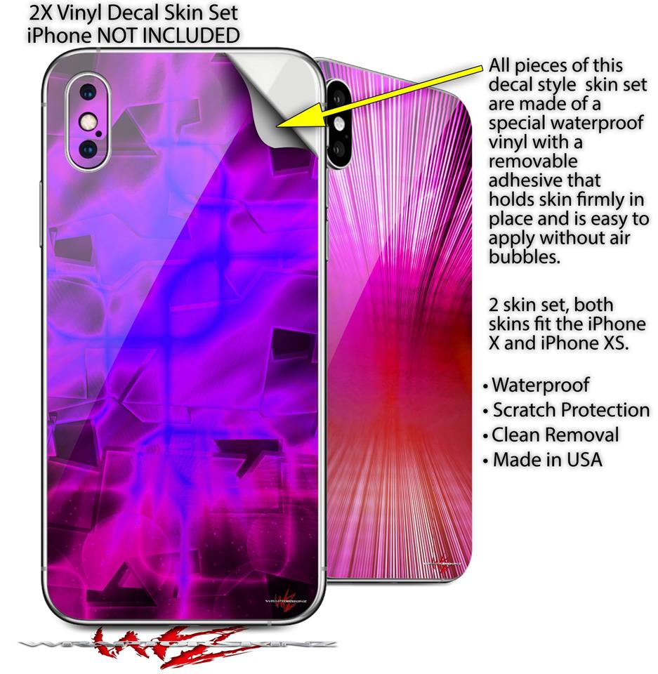 2 Decal style Skin Wraps set for Apple iPhone X and XS Cubic Shards Pink